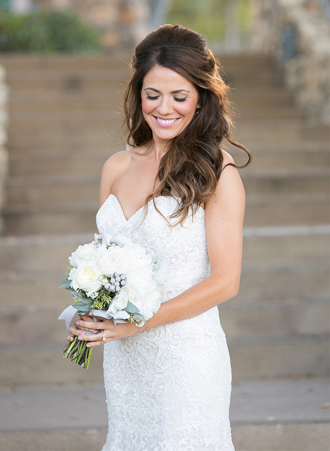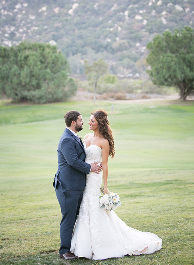 An ombre navy color scheme decorated this stunning Temecula Canyon Wedding from the bridesmaid dresses to the stationery. The rich palette combined with white florals and eucalyptus leaves to make for one classy affair! The beautiful bride designed the big day and wore an embroidered gown with navy pumps for her “something blue.” Here are a few words from her on the wedding of her dreams.