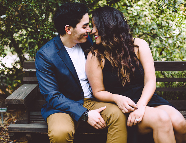 This duo is all smiles in their Trabuco Canyon engagement photos in Thomas F. Riley Wilderness park. They’re sharing the love with us on our wedding blog today! With beautiful lavender and cacti surrounding them, they wandered around and looked pretty for Priscilla of Le Cilla Photography.