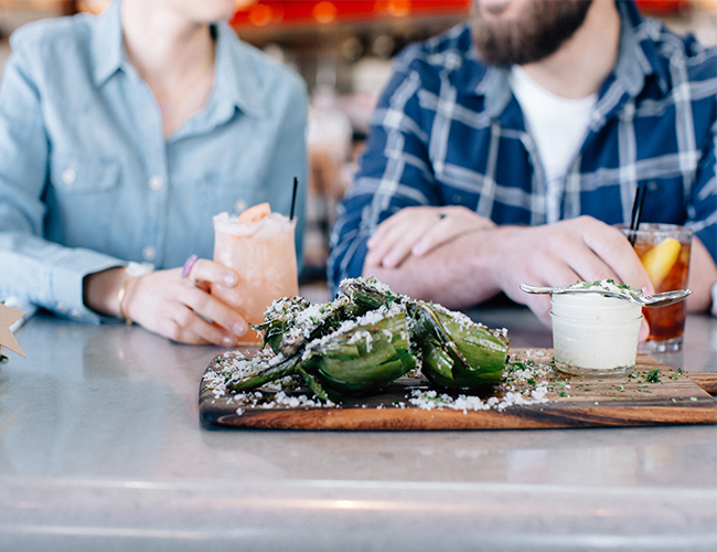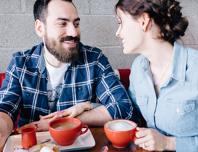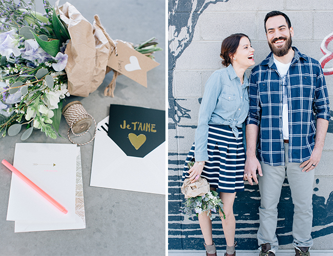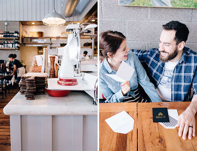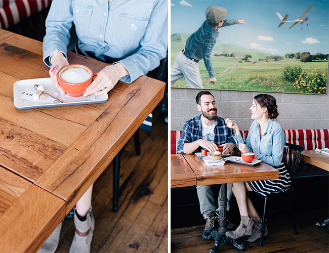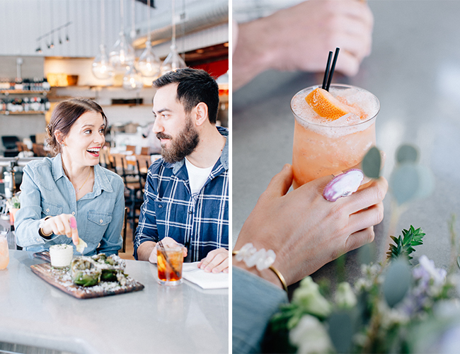 How cute is this blogger duo?! The stars of Dream Book Design put on their stylish duds, snuck away for some yummy treats, and snapped these anniversary photos while they were out! At a local food spot they sipped on cocktails and lattes and laughed a lot. They look adorable and the food looks delicious – what more do you need?! La Ricki styled the shoot on their behalf and Heather Kinkle photographed all their lovey dovey fun! Here’s how Ricki was inspired by their sweet love and fun surroundings: