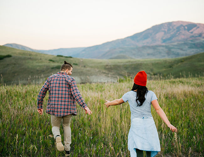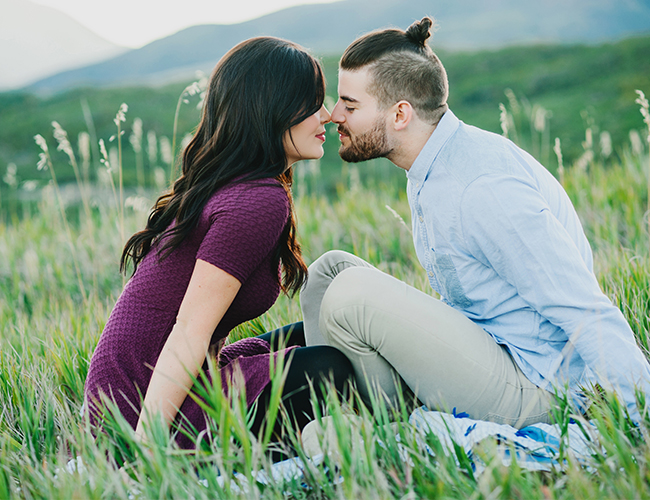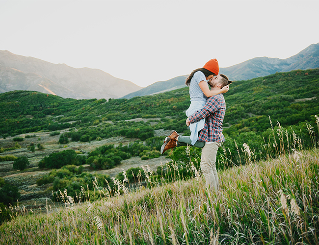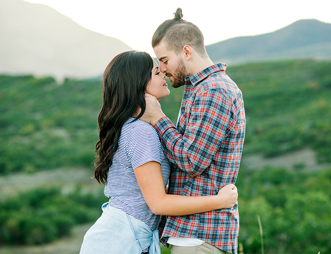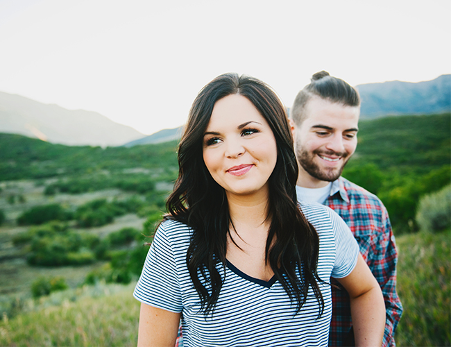 We just can’t get enough of Mollee & Queston’s mountain engagement photos on our wedding blog today! We’re loving their style, the setting in Mountain Green, Utah, and their adorable love! We’re pretty jealous that Lori Romney got to hang out with them on these Utah mountains because boy do they seem cool! Here’s how the beauty and her beau (man bun and all!) fell for each other straight from the them: