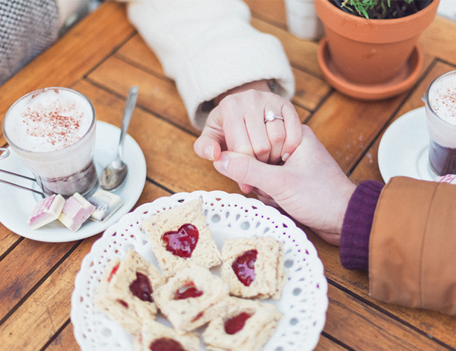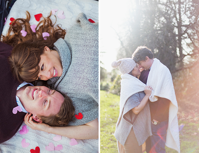 After a brief walk in the park where they spent many days early on in their courtship where we got some gorgeous shots of the two wrapped up in a cozy blanket and on the ground with some heart confetti, we stopped again for snacks at one of their favorite cafe where, appropriately, the couple had some hot chocolate and “lovewiches” (jam sandwiches with a heart cut out–so cute!).