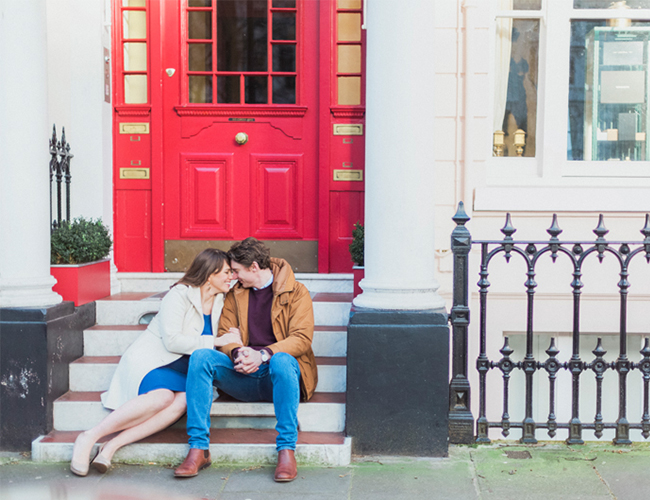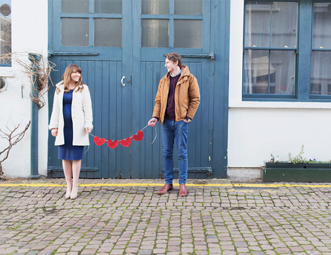For all the newly engaged (or soon-to-be) a Valentine’s Day engagement photo shoot is quite possibly the cutest idea. This couple on our wedding blog had both the holiday, and their upcoming nuptials as great excuses to be all lovey-dovey around London. Yes, that does make this shoot even more romantic! Amy Fanton followed them around with her camera, tossing them heart shaped props and documenting their love all day long: