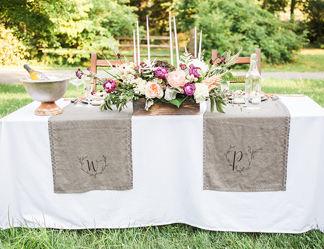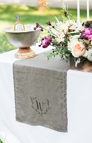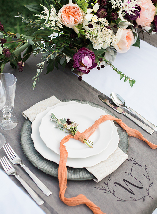 During a tour of Paradocx Vineyard property, we were mesmerized by the crumbling terra-cotta tower that looked like it belonged on the pages of an old European fairy tale. Topped with natural greenery that us wedding pros go gaga for, the tower and it’s organic garland was the inspiration for our color palette for the day.