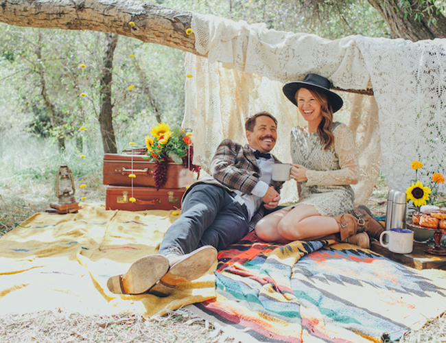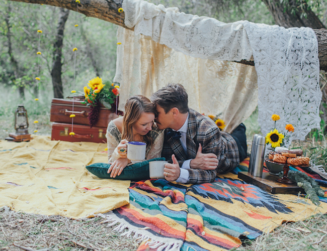 This engagement shoot on our wedding blog today happened at Lair o’ the Bear Park – which we just discovered is pretty spectacular. The adorable couple donned vintage duds that give us major hipster vibes – to go with the voodoo donuts we presume ;). What more do you need than coffee, donuts, and each other, right? A gorgeous picnic spot complete with cozy blankets doesn’t hurt either – it reminds us of this other favorite engagement shoot! The whole thing is a cuddly, cute, romantic afternoon styled by Forever Cole Events and photographed by Taylor Carlisle. Here’s how Heather of Forever Cole Events described the perfect day: