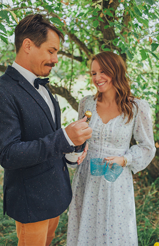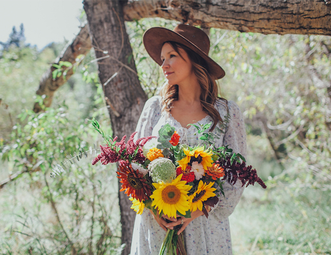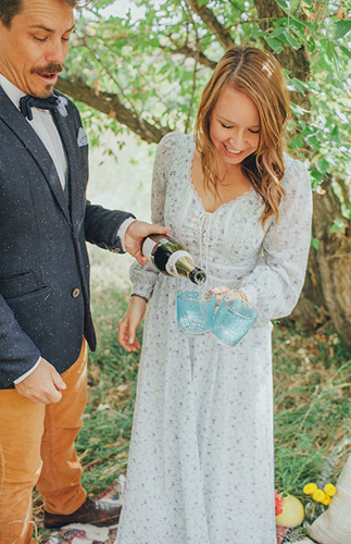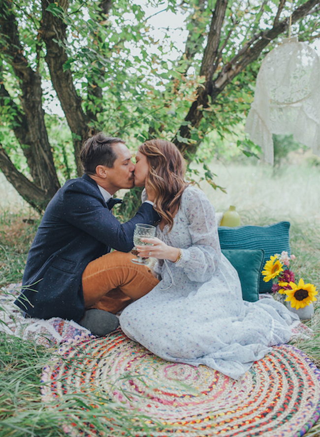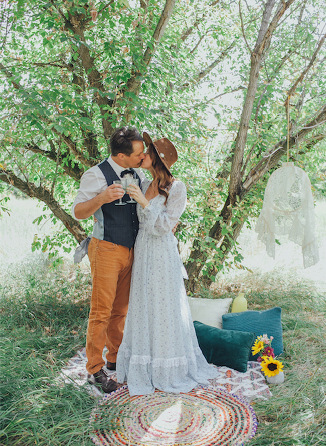 We did a picnic that included legendary voodoo doughnuts, coffee, and champagne of course. The bride and groom wore their own attire that they found in their closet. They had such great style that it was easy to style them. It was very natural and the park was a gorgeous backdrop. As the stylist I created a lace tent filled with plaid & mis-matched blankets and a streamer of flowers for the couple to enjoy their breakfast. It also included vintage suitcases, decor, and Colorado grown flowers. The shoot was inspired around Colorado grown or local businesses. We did all florals bought from the local farmers market just a few days before. We spent hours just taking in the the scenery and being inspired by the natural beauty.