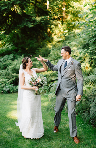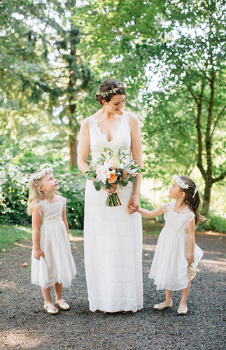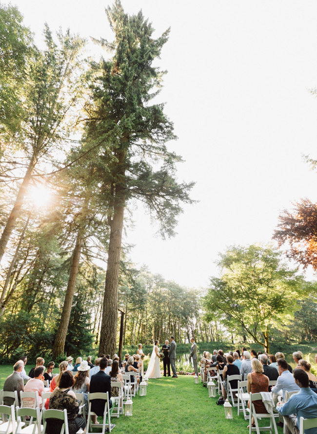 This beautiful wedding in the middle of the portland woods is a dream scenario. The privacy, the canopy of trees over head, the twinkle lit & tented reception – it’s the making of a romantic wedding day to say the least. We love all the well thought out details, organic floral arrangements and simple, elegant style, all photographed beautifully by Katy Weaver Photography.