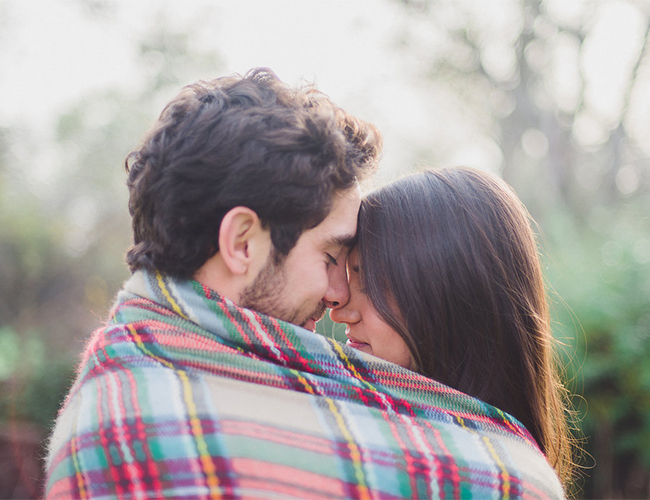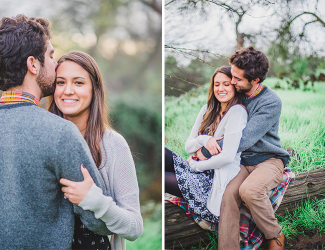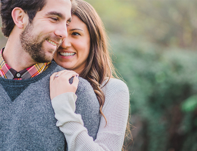 This couple cozies up for their Winter engagement session on our wedding blog today before Spring – and their fast approaching nuptials – comes. All they really need is their photogenic selves, but throw in a plaid blanket, some hot cocoa, and their pup, and these photos become even cuter! We’re envying the couple’s perfect winter style and the bride-to-be’s sparkly engagement ring, naturally. Their friend and photographer Alexandria, of Peppermint Plum Photography, followed their lovey dovey smiles around this pretty park capturing this special time before they say “I Do!”