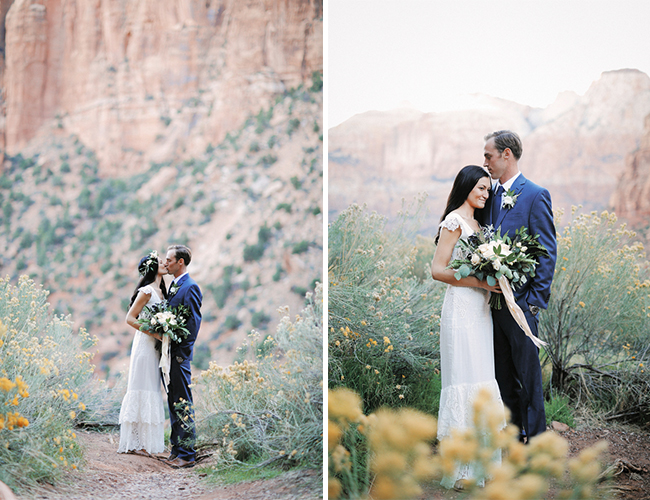Sean and I find our solace in nature. We love to camp, and backpack, and explore all that nature has to offer. Living in Utah, we have many chances to take advantage of the great outdoors. We chose Zion as our wedding location because it’s a place that is very dear to us. We’ve spent so much time hiking and camping in Zion, and while planning our wedding, we knew we wanted to get our friends and family together in a beautiful place. Zion was that place for us. Not only is it magnificent, but it’s a place where we’ve shared sweet memories together and a place that we really truly love. The most incredible part of our wedding day was being with everyone that we cherish in such an awe inspiring place. To us, Zion National Park is a sacred place and to be surrounded by it’s beauty and the love of our friends and family was such a powerful experience for us.